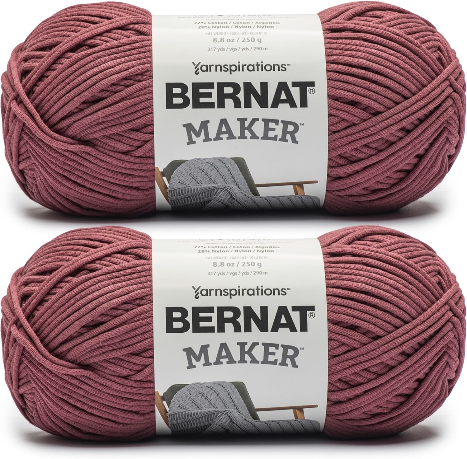 Bernat Maker JAM Yarn | Made of 72% cotton and 28% nylon for softness, durability, and flexibility. Each ball weighs 250g (8.8 oz) and measures 290m (317 yards), ideal for large projects. Perfect for blankets, pillows, rugs, fashion garments, baby items, and home décor projects. |