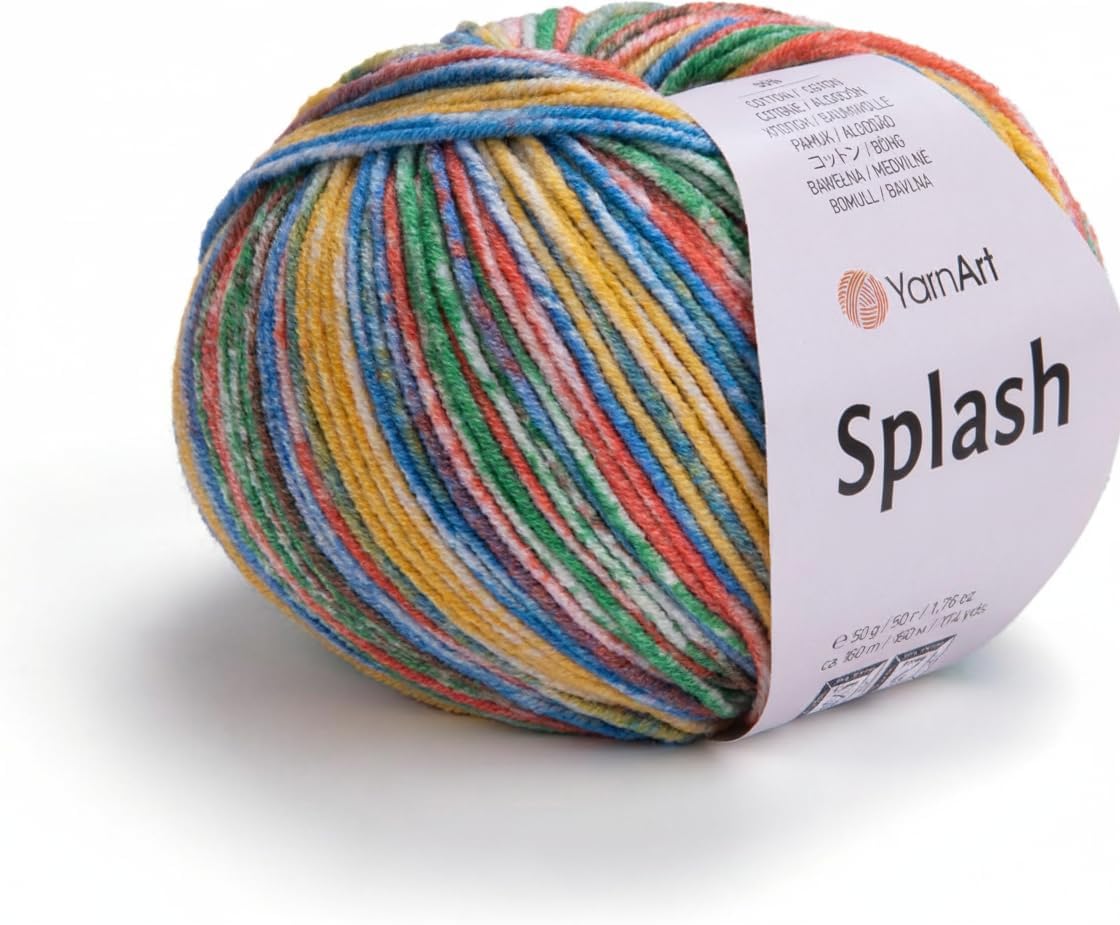 YarnArt Splash Variegated Sport Yarn | Made of 55% soft cotton and 45% durable polyacrylic for breathability, resilience, and structure. Perfect for summer garments, airy shawls, decorative items, and lightweight blankets. Smooth fibers ensure easy handling, consistent stitches, and professional results. |