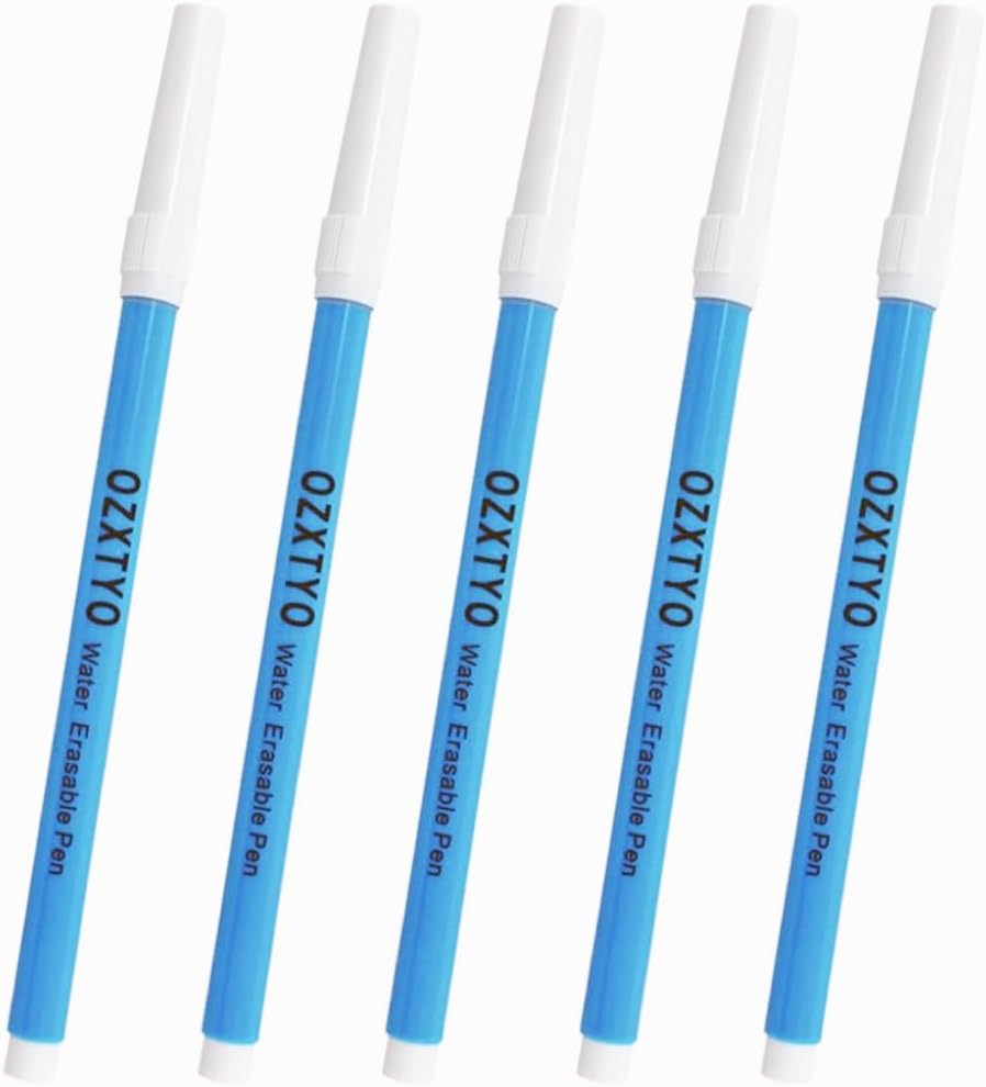Mr. Pen- Fabric Markers for Sewing | Includes 5 pens with specialized water-soluble ink for temporary fabric marking. Ink washes away with water, leaving no permanent stains or residue. Ensures projects look clean and polished by removing markings before completion. Avoid ironing before erasing; heat may set the ink permanently. |
