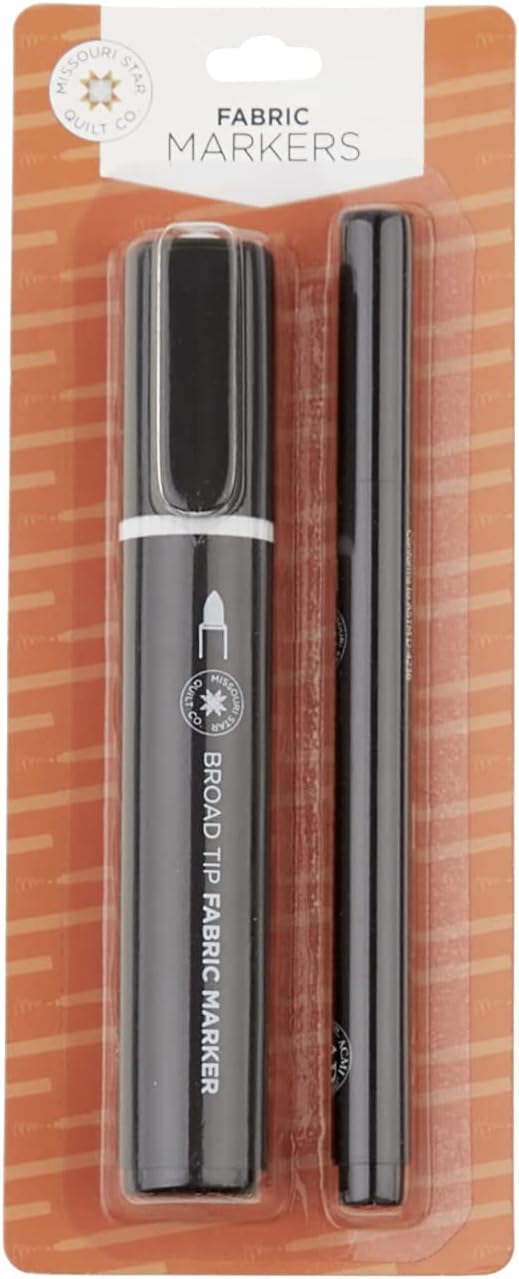 Black Fabric Markers 2 Pack | Water-Resistant & Durable. No steam or ironing required; ink dries quickly for hassle-free creativity. Perfect for quilt labels, clothing customization, and fabric crafts. Fine tip allows for detailed outlining, while broad tip is ideal for bold strokes. |